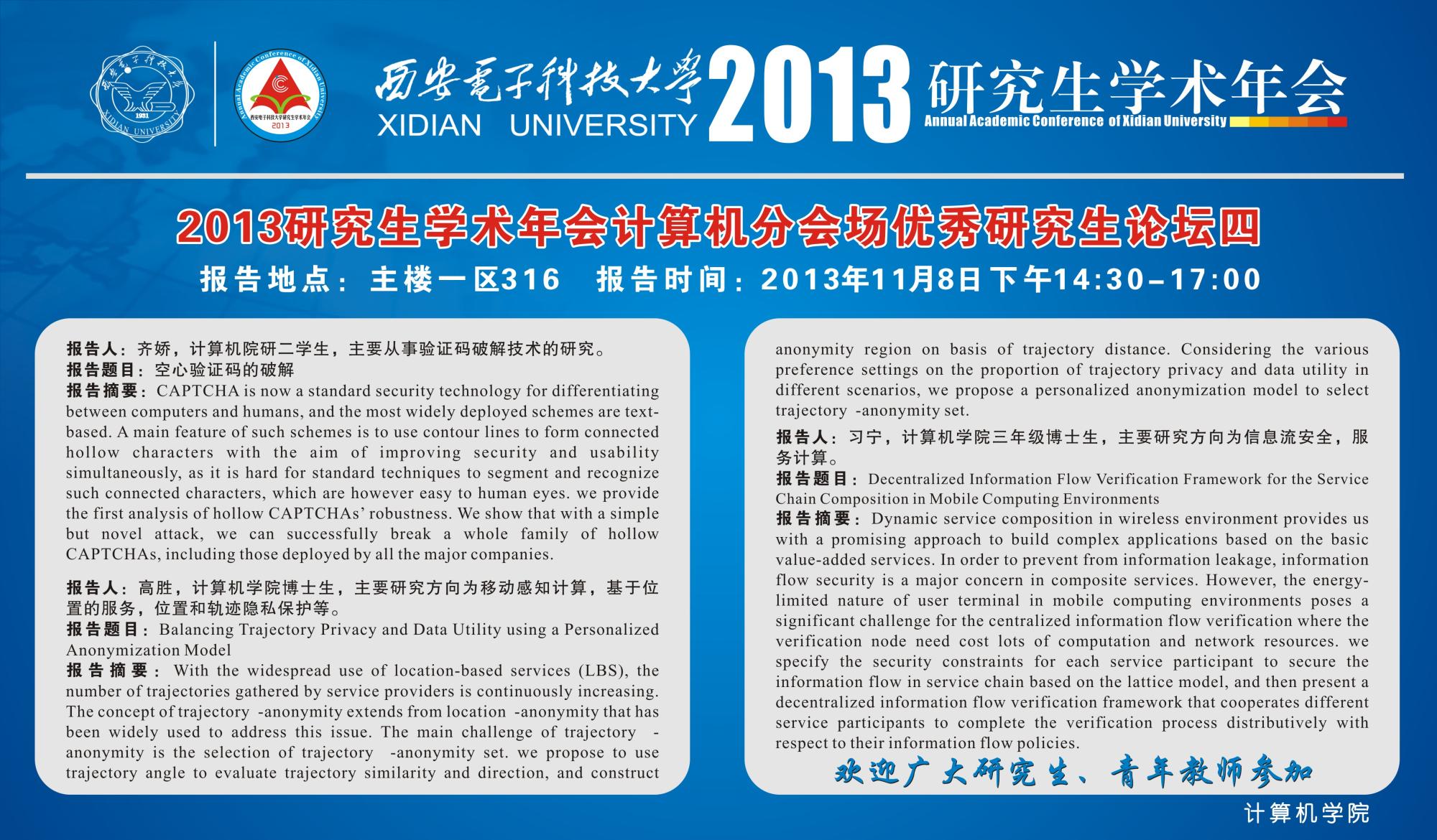 2013年研究生学术年会计算机学院分会场优秀研究生论坛四